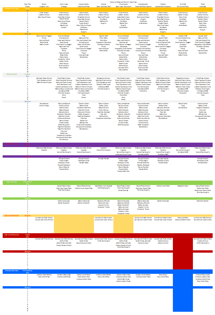 Social gear will largely be limited sets of materials that look similar to the way the gear looks like if the legs item is puff and slash breeches with a black leather primary zone and blue velvet secondary zone, then black fabric would work for the primary zone, and a contrasting color of fabric for the secondary zone. If it has silver piping as a trim, than brass or gold would also work for the trim. If the colors are set because it is say an order outfit, then only the materials can change but the colors have to stay the same.